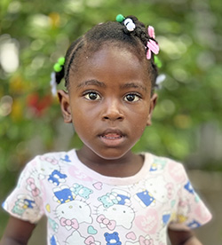 Skincha lives in the urban community of Tabarre. She has 2 sisters. Her mother is the main person in their home. She is currently a small vendor and a beautician, but she cannot afford to keep Skincha in school.